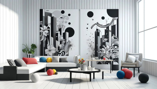 Découvrez la peinture en noir et blanc, une rencontre audacieuse entre l'ombre et la lumière laissant une empreinte indélébile dans votre espace intérieur.