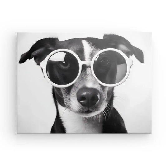 Tableau Chien Lunettes Noir et Blanc Drôle et Mignon Portrait Animal