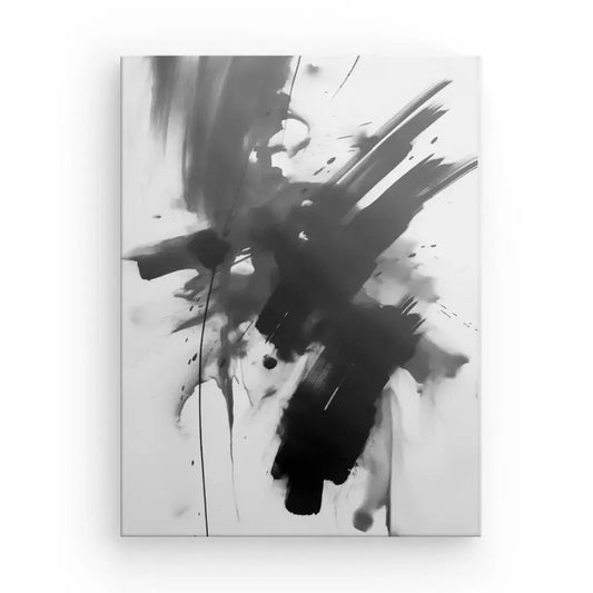 Tableau Abstrait Chinois Tâches d'Encre Noir et Blanc