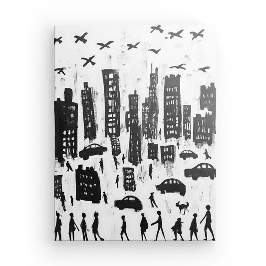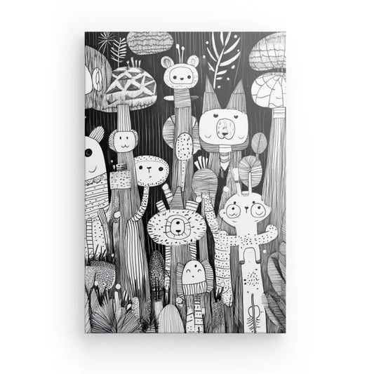 Tableau Dessin Enfant Noir et Blanc Art Naïf
