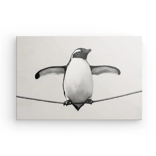 Tableau Dessin Pingouin Drôle Noir et Blanc