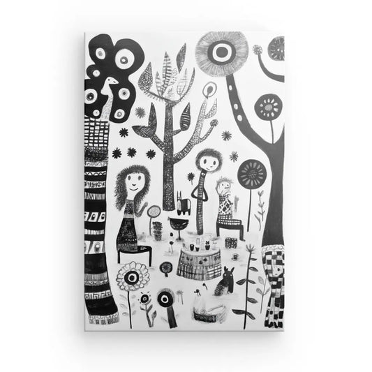 Tableau Dessin Naïf Personnages Noir et Blanc