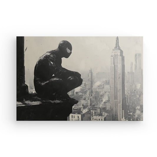 Tableau dessin Spiderman paysage sépia