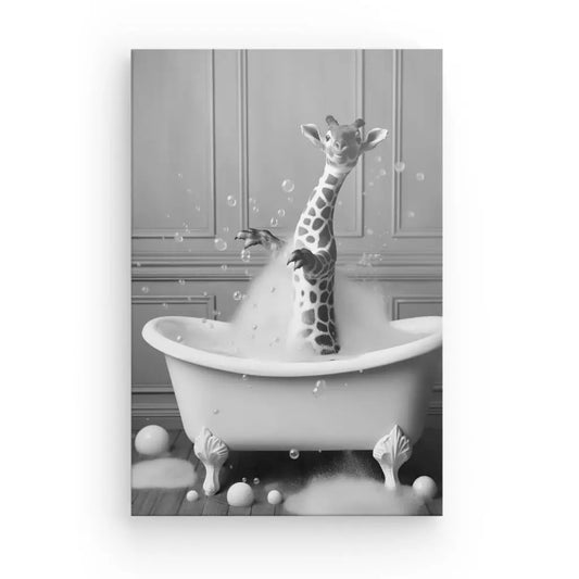 Tableau Girafe Salle de Bain Baignoire Portrait Animaux Noir et Blanc