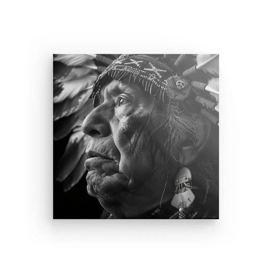 Tableau Indien d'Amérique Coiffe Plumes noir et Blanc