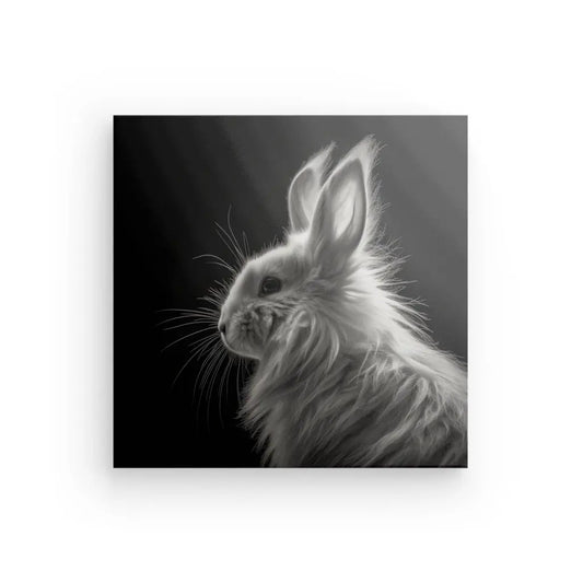 Tableau Lapin Lion Angora Portrait Animal Poilu Mignon Noir et Blanc