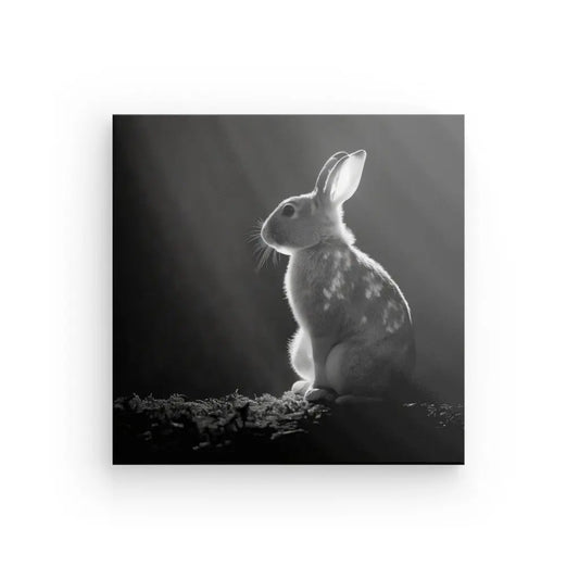 Tableau Lapin Campagne Nature Animal Noir et Blanc