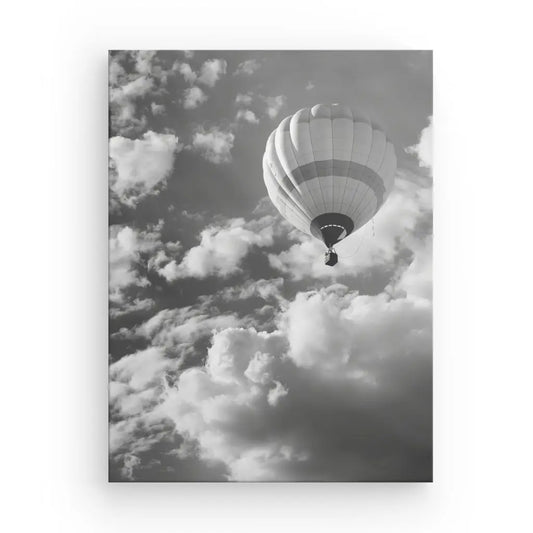 Tableau Montgolfière Aérostat Paysage Ciel Noir et Blanc