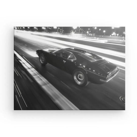 Tableau Muscle Car sur Route Noir et Blanc