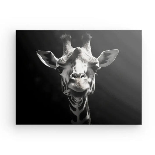 Tableau Portrait Girafe Drôle Noir et Blanc