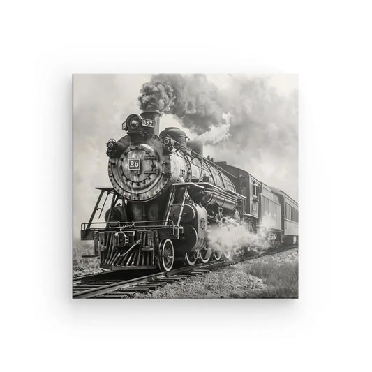 Tableau Train à Vapeur Vintage Noir et Blanc