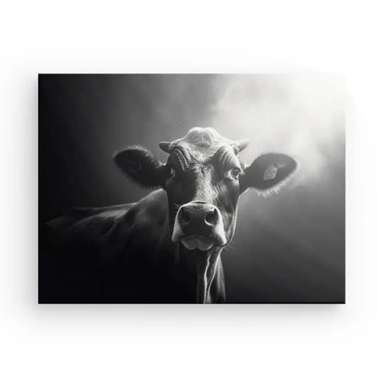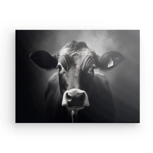 Tableau Vache Portrait Bovin Race Limousine Noir et Blanc