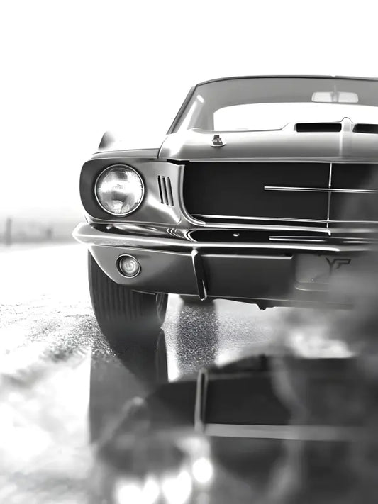Tableau Voiture Ancienne Noir et Blanc Mustang