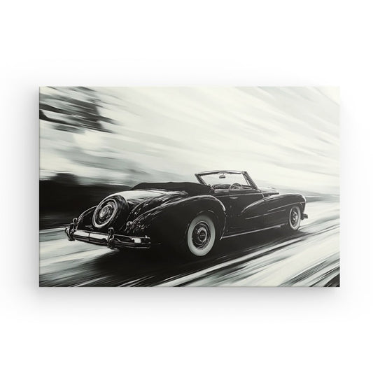 Tableau voiture ancienne vitesse peinture noir et blanc