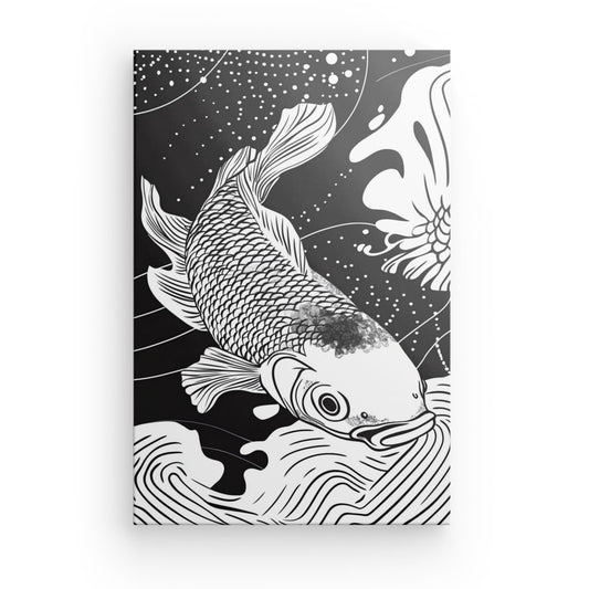 Tableau Carpe Koï Dessin Asiatique Monochrome