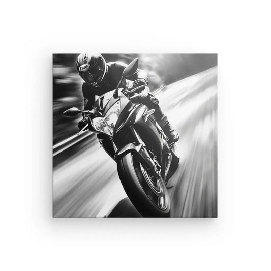 Tableau Carré Moto Vitesse Route Noir et Blanc
