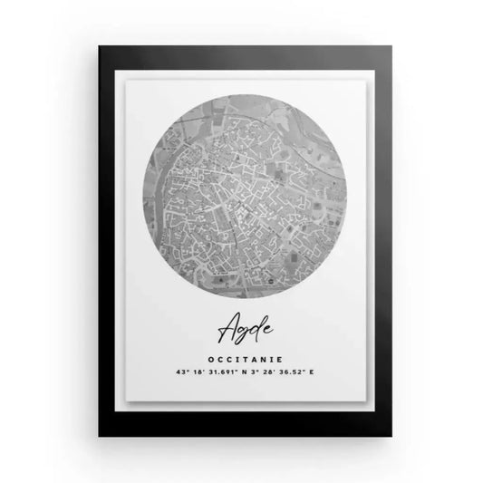 Tableau Carte Ville Argelès sur Mer Noir et Blanc