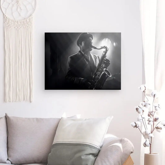 Tableau Musicien Jazz Saxophone Peinture Noir et Blanc