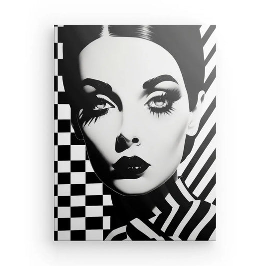 Tableau Pop Art Damiers Femme Glamour Noir et Blanc