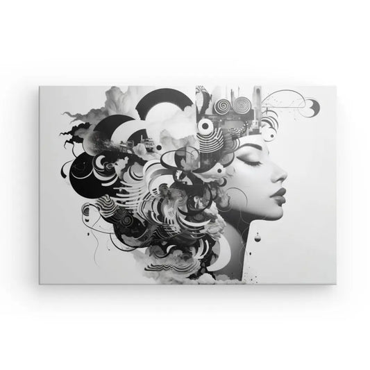 Tableau Moderne Femme Nuages Pop Culture Noir et Blanc