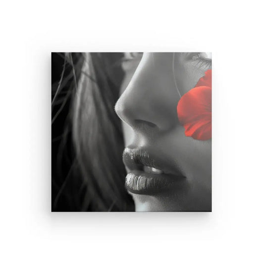Tableau Portrait Femme Noir et Blanc Fleur Rouge