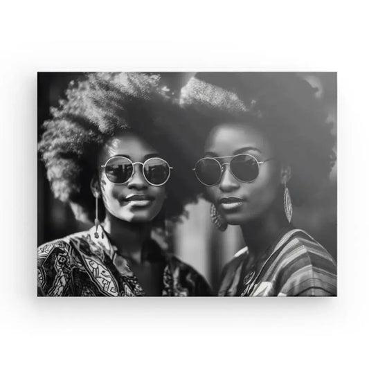 Portrait Femmes Afro 80's Lunettes de Soleil Cool Design Noir et Blanc