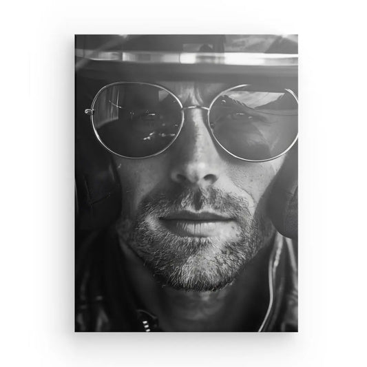 Tableau Portrait Gros Plan Motard Rayban Noir et Blanc