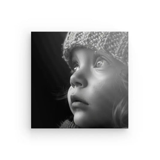 Tableau Portrait Enfant Bonnet Noir et Blanc