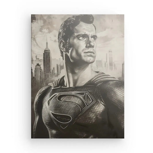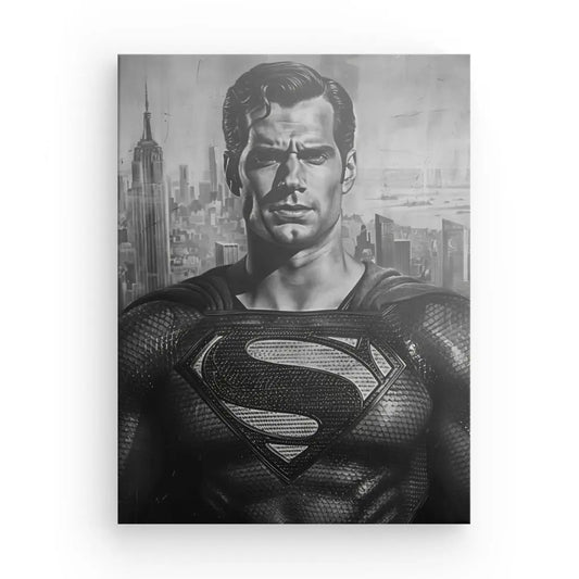 Tableau Portrait Gros Plan Superman Noir et Blanc