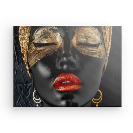 Tableau Femme Portrait Moderne Dorée Rouge Noir
