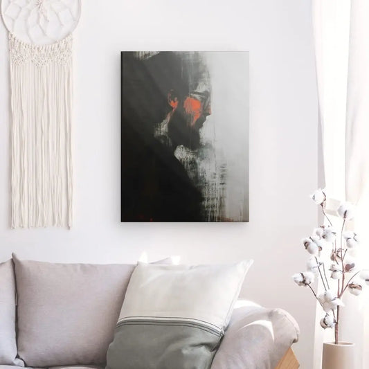 Tableau Portrait Homme Peinture Noir Blanc Orange