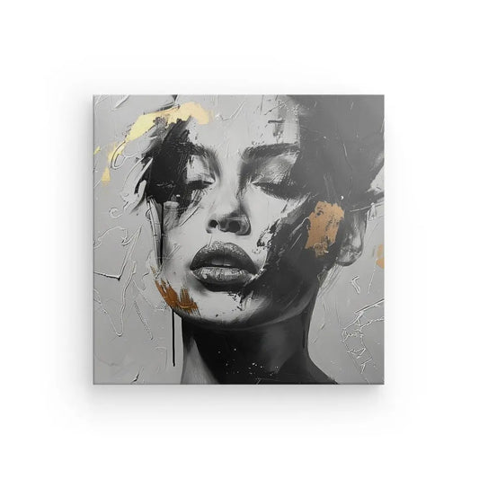 Tableau Visage Peint Femme Noir Blanc et Doré