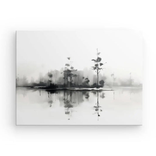 Tableau Nature et Lac Peinture Aquarelle Noir et Blanc