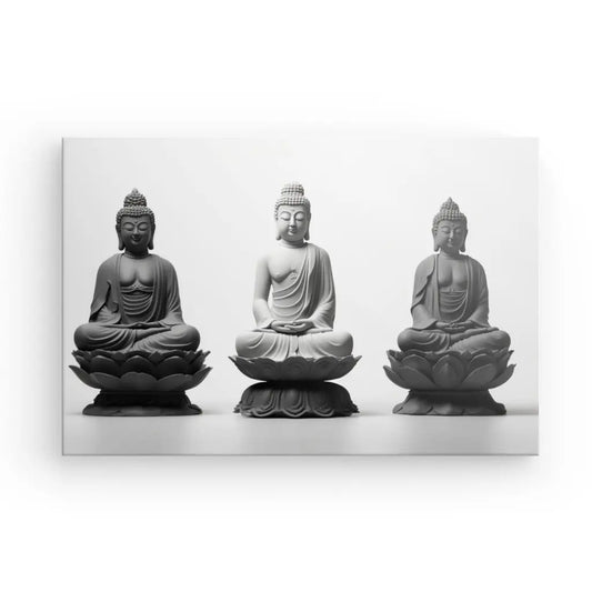 Tableau Sérénité 3 Bouddhas Statues Minimaliste Noir et Blanc
