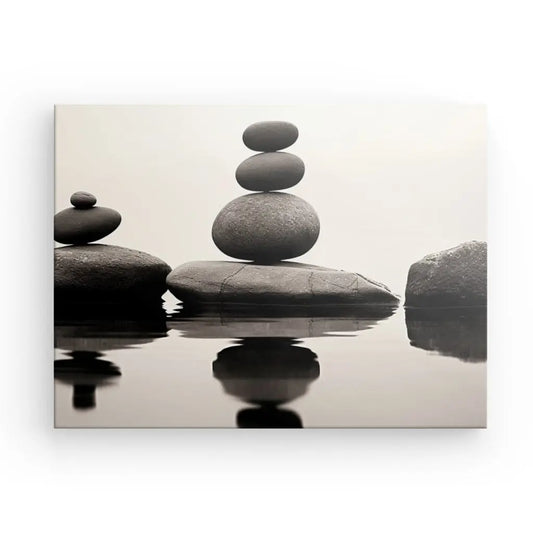 Tableau Zen Minimaliste Pierre Pile Cairns Relaxation Noir et Blanc