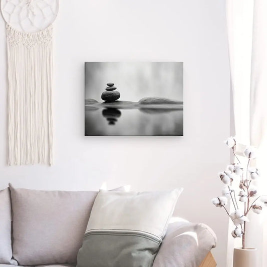 Tableau Relaxant Pierres Ruisseau Paysage Monochrome