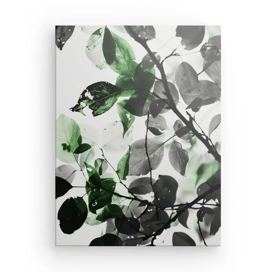 Tableau Nature Feuilles Noir et Blanc Touche de Vert