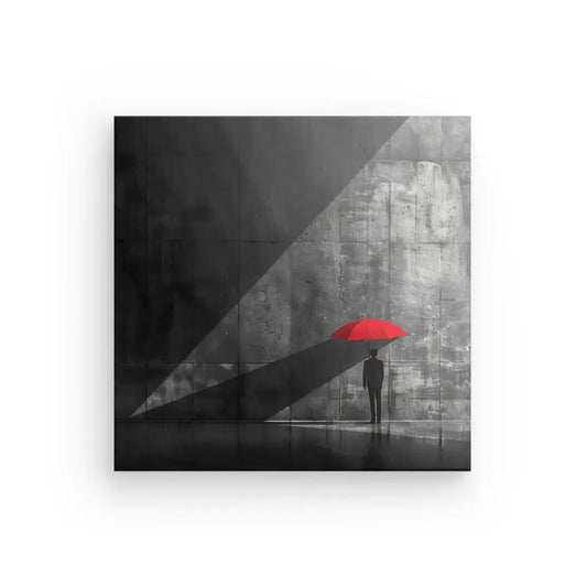 Tableau Homme Parapluie Rouge Scene Noir et Blanc