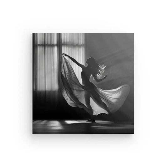 Tableau Femme Voilage Robe Scène Noir et Blanc