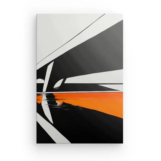 Tableau Immeuble Style Rétro Noir Blanc et Orange