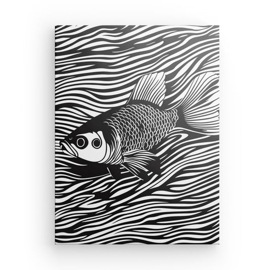 Tableau Dessin Poisson Rétro Noir et Blanc