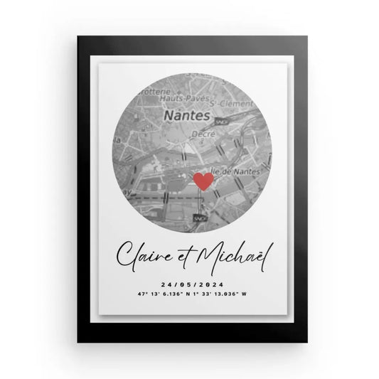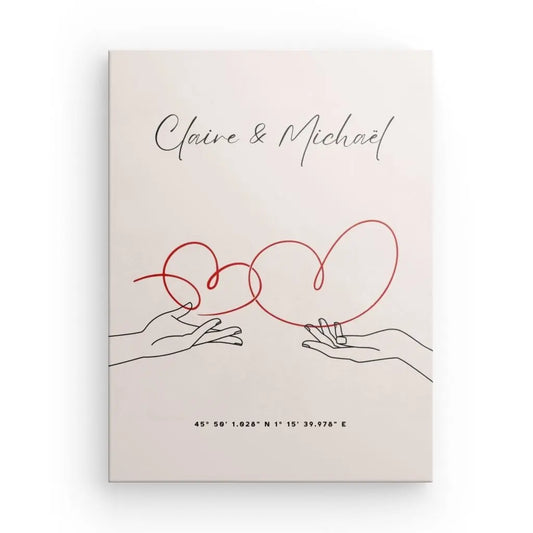 Tableau Personnalisé Couple Carte Prénoms et Date