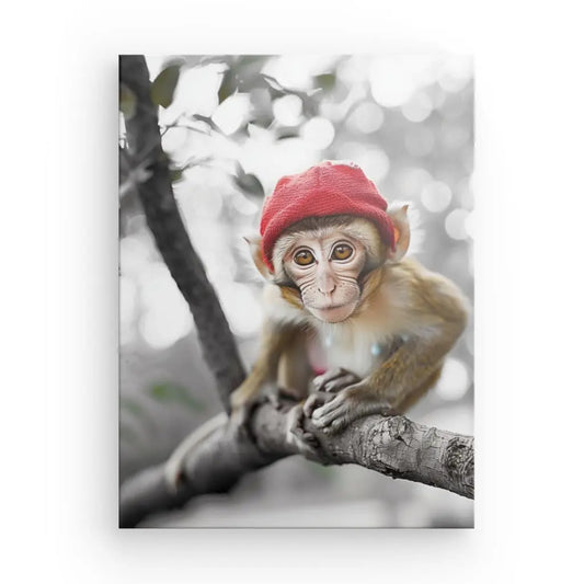 Tableau Singe Marrant Bonnet Rouge Noir et Blanc