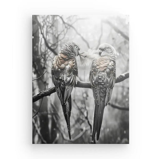 Tableau Perruches Inséparables Branche Monochrome Rosé