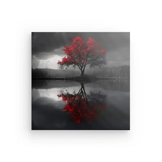 Tableau Paysage Noir et Blanc Arbre Rouge