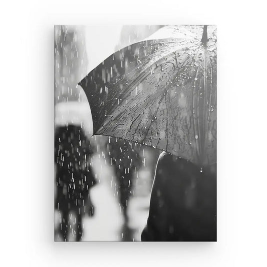 Tableau Pluie Parapluie Scene Urbaine Noir et Blanc